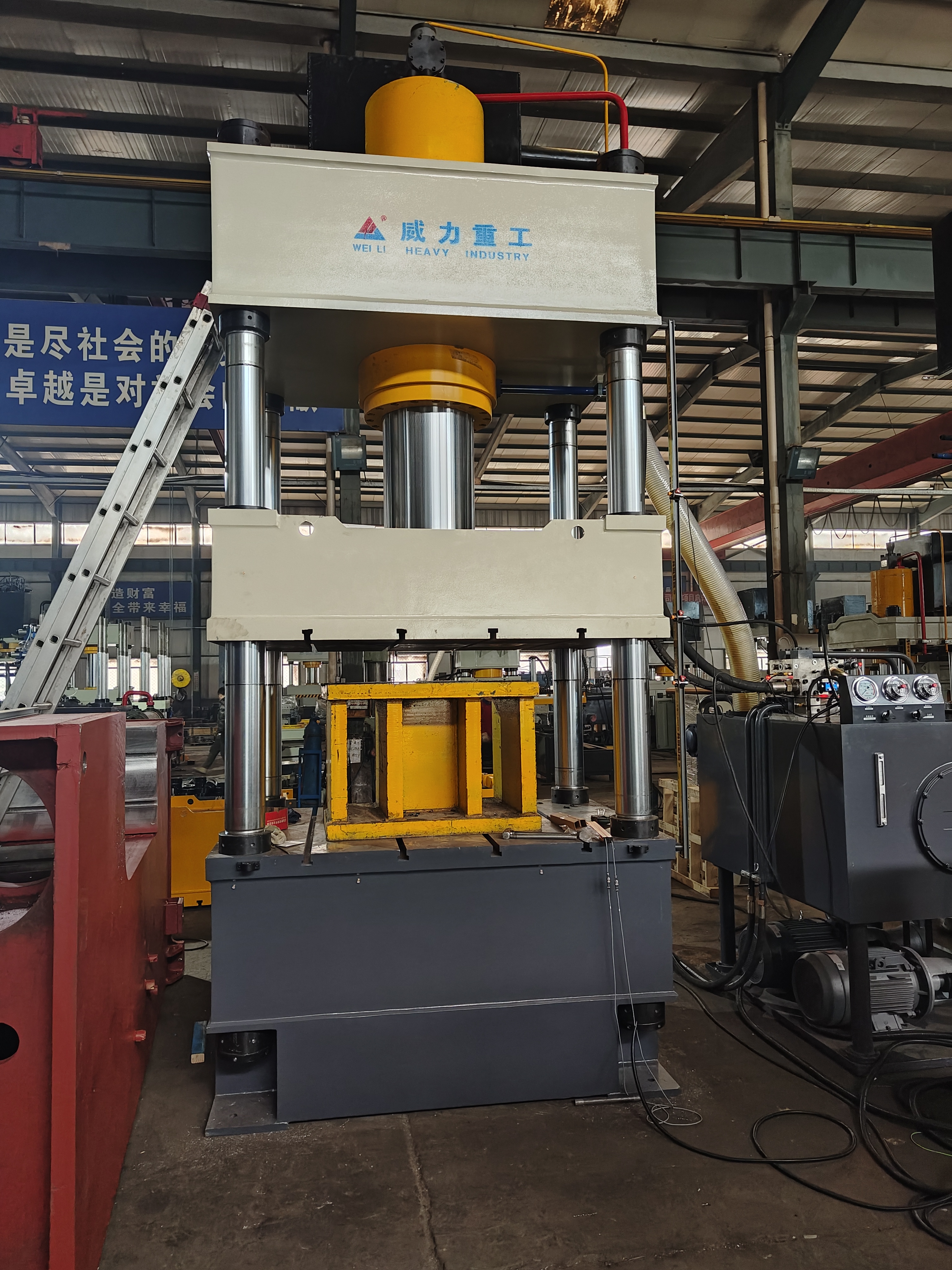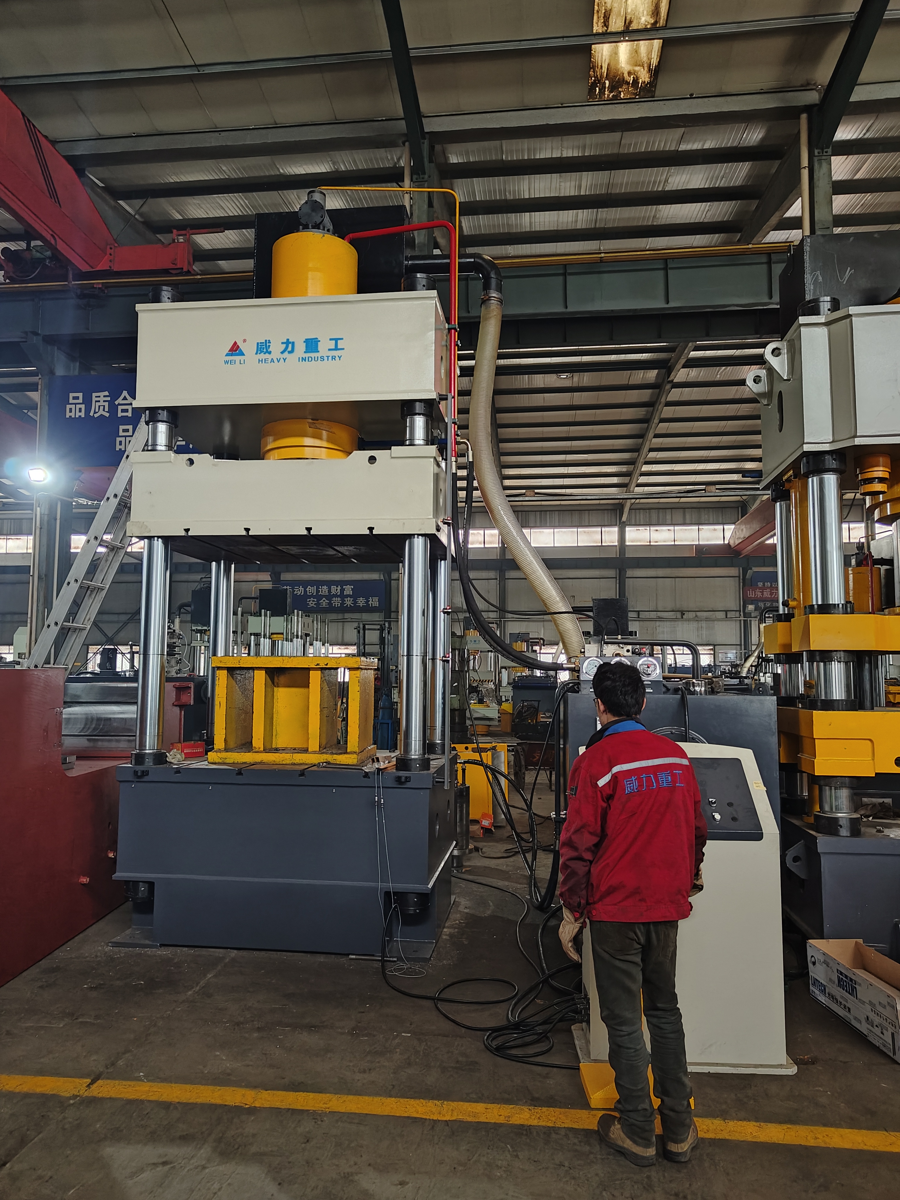 【產品描述】:500噸三梁四柱常規(guī)液壓機 是一種利用液體壓力進行工作的機械裝置,廣泛應用于各種工業(yè)領域。而500噸三梁四柱常規(guī)液壓機則是一種大型的液壓機,通常用于重型工業(yè)和制造業(yè)中的各種壓制和成型工藝。 該液壓機的主要結構包括三個主梁和四個柱子,以及一些其他重要的部件,如油缸、工作臺、壓力控制器等。這些部件協(xié)同工作,使液壓機能夠實現(xiàn)各種不同的壓制和成型操作。
